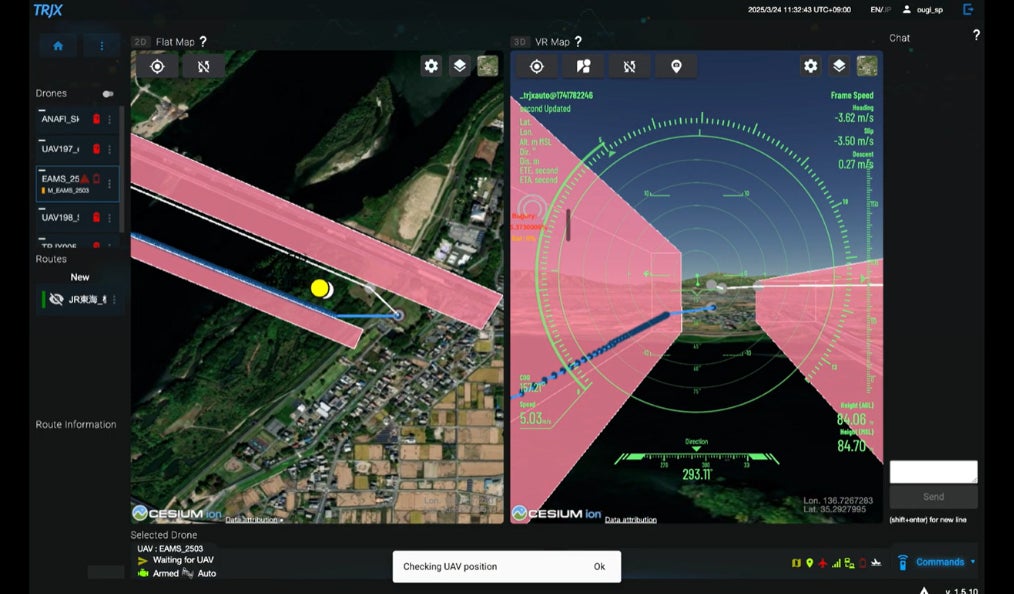 当社が連携する株式会社スカイピーク(以下「スカイピーク」)と東海旅客鉄道株式会社(以下「JR東海」)は、2024年12月に、鉄道施設におけるドローン目視外飛行運用の検討についてコンサルティング契約を締結しました。このたび、2025年3月24日に、鉄道施設周辺での安全なドローン目視外飛行の運用を検討するために、ドローン「レベル3.5飛行」の実証実験を実施、実験に当社のシステムが採用されたことをお知らせいたします。